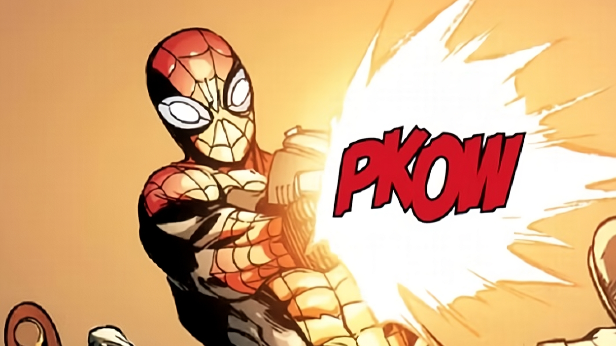 The sound of heavy breathing. Otto Octavius, failing, clings to life after being beaten to a pulp by Spider-Man. With a final smirk, Otto, in Peter Parkers body, says: “At last, Arachnid… the end is yours, and the beginning is mine.” Peter, in Otto’s body, screams as Otto deals the killing blow. Title card. Superior Spider-Man